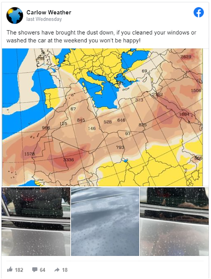 Weather experts have explained the Saharan phenomenon which annually leaves a mixture of sand and dust all over Ireland and the rest of Europe.